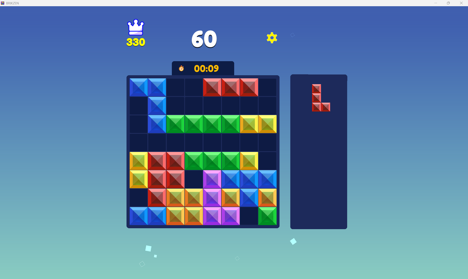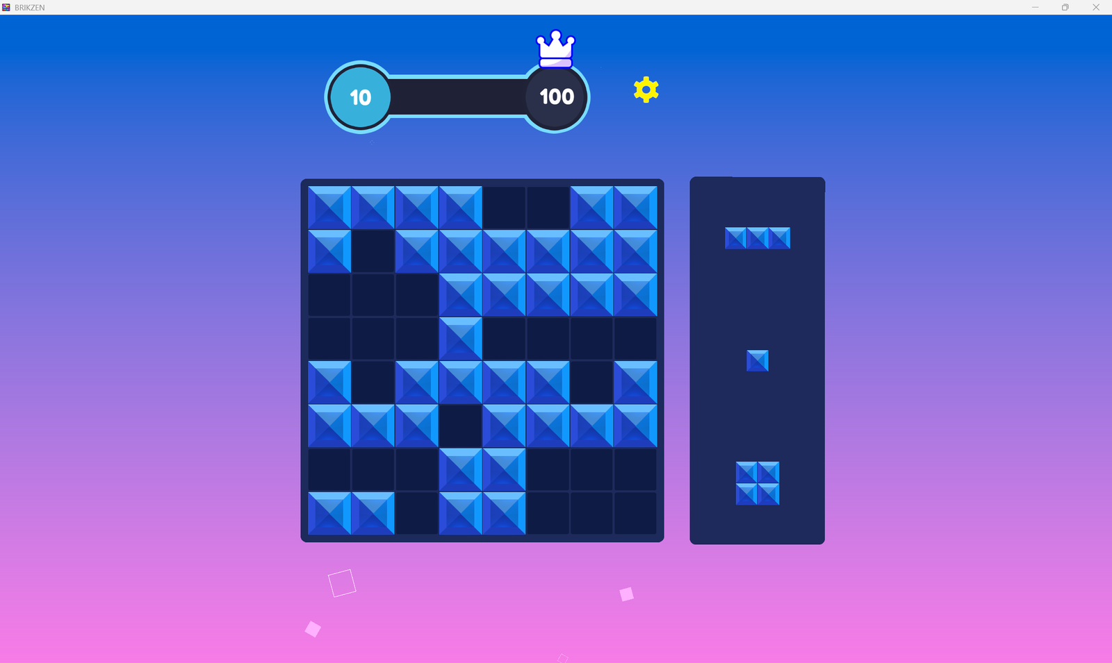 Brikzen is a precision block puzzle game built for players who think before they place. Drag and drop shapes onto the grid, complete rows and columns, and chain clears into satisfying combos β€” all wrapped in a smooth, modern experience that’s easy to pick up and hard to put down.